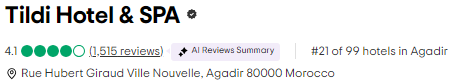 The Tildi Hotel & Spa is located in the centre of the ever-popular resort of Agadir, one of Morocco's most popular tourist destinations.